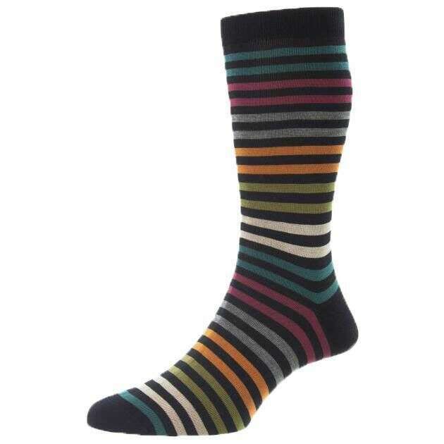 Pantherella Kilburn überall über Streifen Baumwoll -Flüssigkeitssocken - schwarz