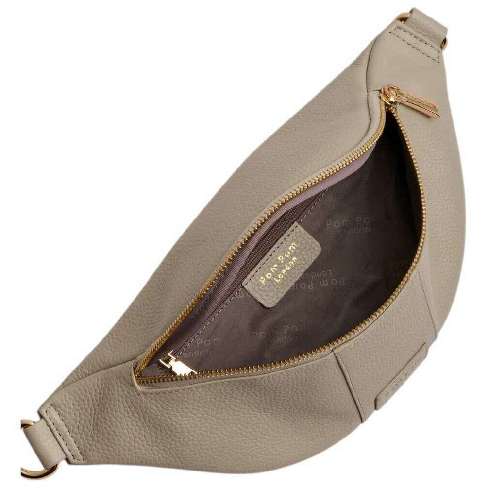 Diese Damen-Gürteltasche besteht aus 100 % Vollnarbenleder, ist in Beige gehalten und stammt von der Marke Pom Pom London. Es misst 12 cm (Höhe) x 33 cm (Breite) x 11 cm (Tiefe). Alle Taschen werden komplett mit einer Pom Pom London-Verpackung geliefert. Die Pom Pom London Gürteltasche – Stein ist für alle gedacht, die eine stilvolle Option suchen, bei der Sie die Hände frei haben und dabei keine Kompromisse bei der Eleganz eingehen müssen. Seine schlanke Silhouette und sein modernes Aussehen machen es zum perfekten Accessoire für Tage unterwegs, Reiseabenteuer oder alltägliche Besorgungen. Es ist aus Vollnarbenleder gefertigt und bietet sowohl Strapazierfähigkeit als auch ein luxuriöses Finish. Die Tasche verfügt über einen vielseitigen Nylonriemen, der für eine bequeme und individuelle Passform angepasst werden kann, egal ob sie um die Taille getragen oder als Umhängetasche getragen wird. Zur praktischen Organisation verfügt es über ein separates Außenfach mit Reißverschluss, das schnellen Zugriff auf das Nötigste ermöglicht, sowie über eine Innentasche mit Reißverschluss, in der Wertsachen sicher und ordentlich aufbewahrt werden. Abgerundet wird der Look durch die charakteristische goldene Hardware von Pom Pom London, die diesem Alltags-Basic einen Hauch ikonischer Eleganz verleiht.