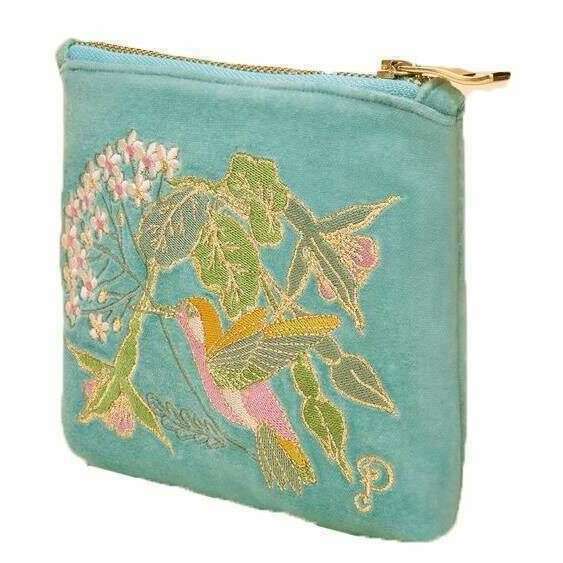 Pulver Hummingbird Velvet bestickter Mini -Beutel - Aqua Blau