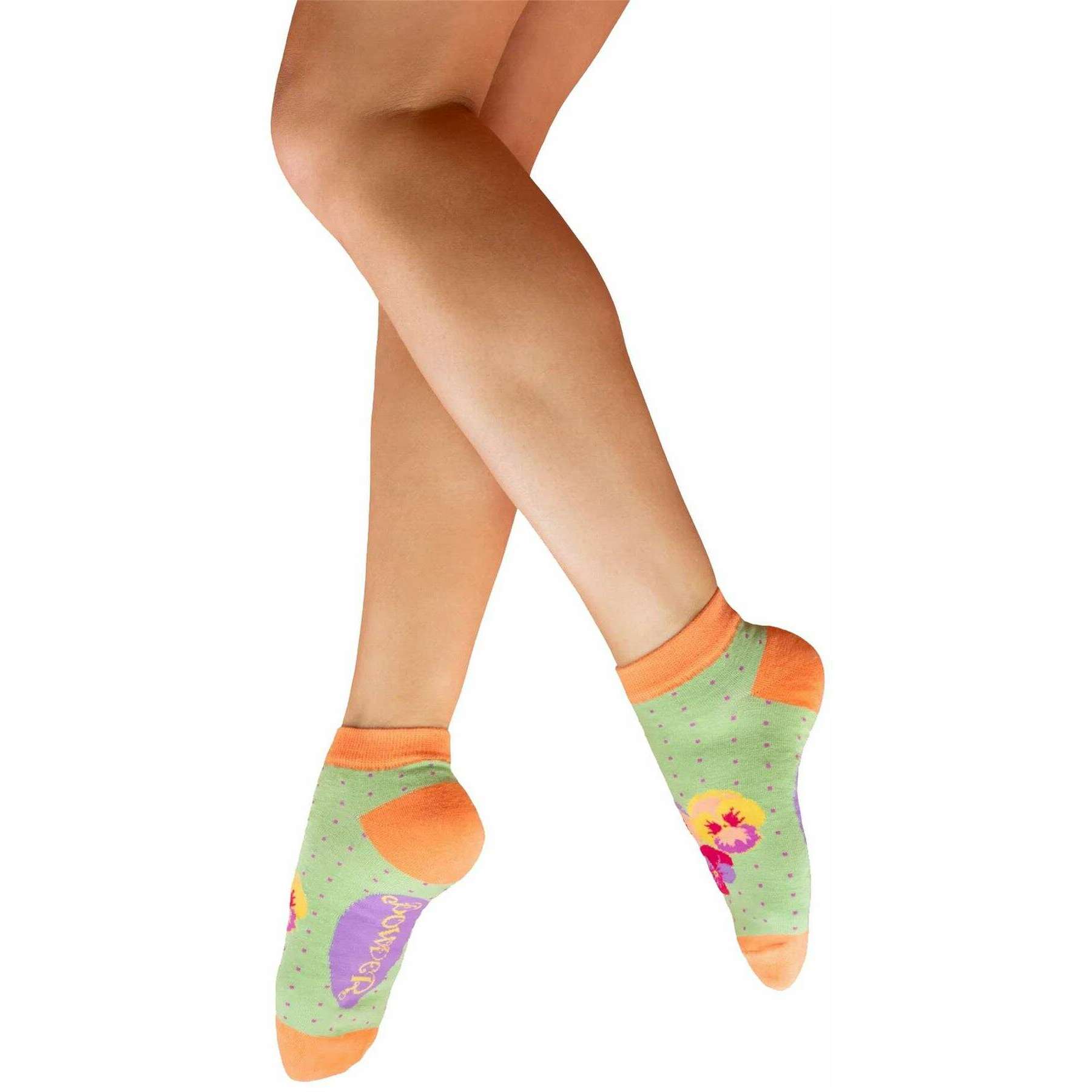Powder Spring Pansies Sneakersocken – Grün/Orange/Lila