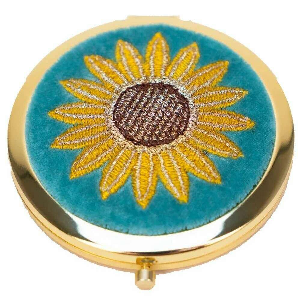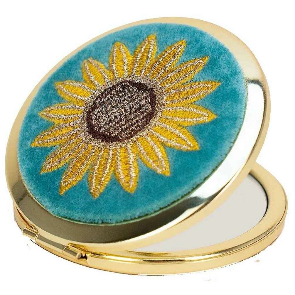 Powder Summer Sunflower bestickter Spiegel – Blau/Gelb/Braun