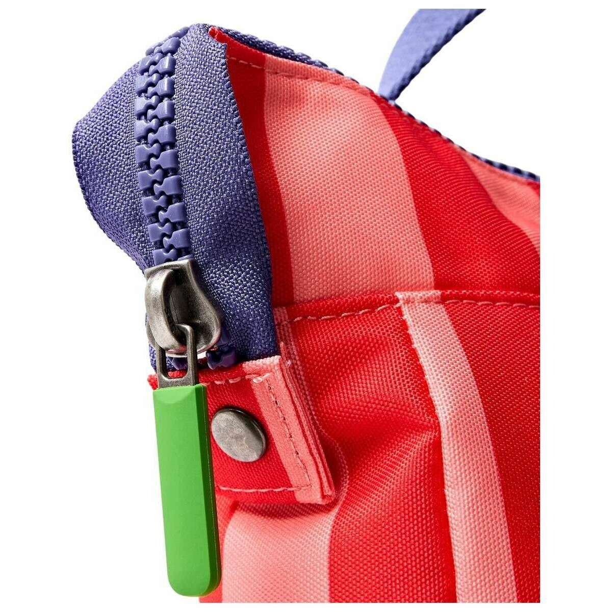 Roka Bantry B Kleiner Rucksack aus recyceltem Canvas – Zirkusmuster Rot/Rosa