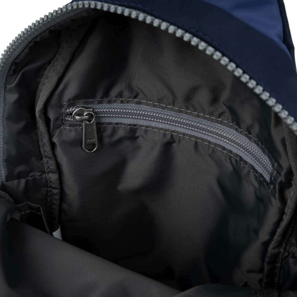 • Vordere Reißverschlusstasche, verstellbares Riemen, Reißverschluss, Innenreißverschluss, geheime Gesäßtasche, recycelt