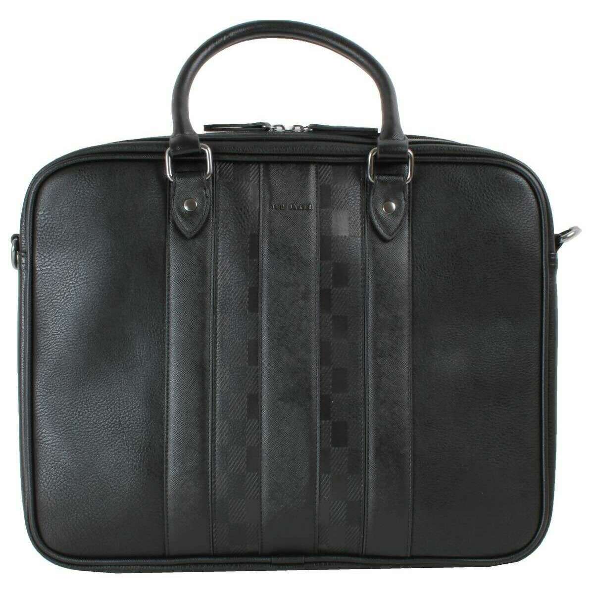 Hergestellt aus 100% Polyurethan ist dieser Black Herren Waymon House Check -Versandtasche des Designers Ted Baker. Es misst 34 cm (Höhe) x 42 cm (Breite) x 4 cm (Tiefe). Alle Taschen sind mit Ted Baker -Verpackung ausgestattet. Der Ted Baker Waymon House Check -Versandtasche - Black hat ein angesehenes gestreiftes Design zusammen mit einem geprägten Ted Baker Logo, das diese stilvolle Tasche herausragend macht. Der verstellbare Schultergurt bietet Vielseitigkeit und sorgt für den Komfort beim Tragen, während das große Hauptfach und die Innenpocke Sie in Bewegung organisieren. Es ist die perfekte Alltagstasche.