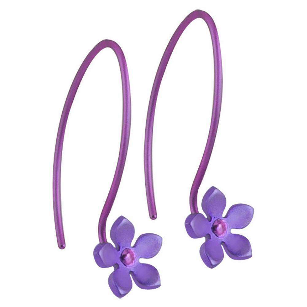 Ti2 Titanium 8mm fünf Blütenblüten Ohrringe - Imperial Purple