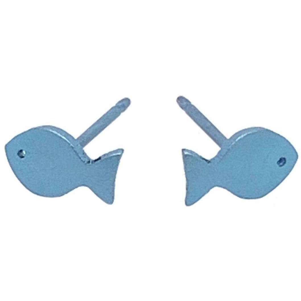 Ti2 Titanium Fisch 7mm Bolzenohrringe - hellblau