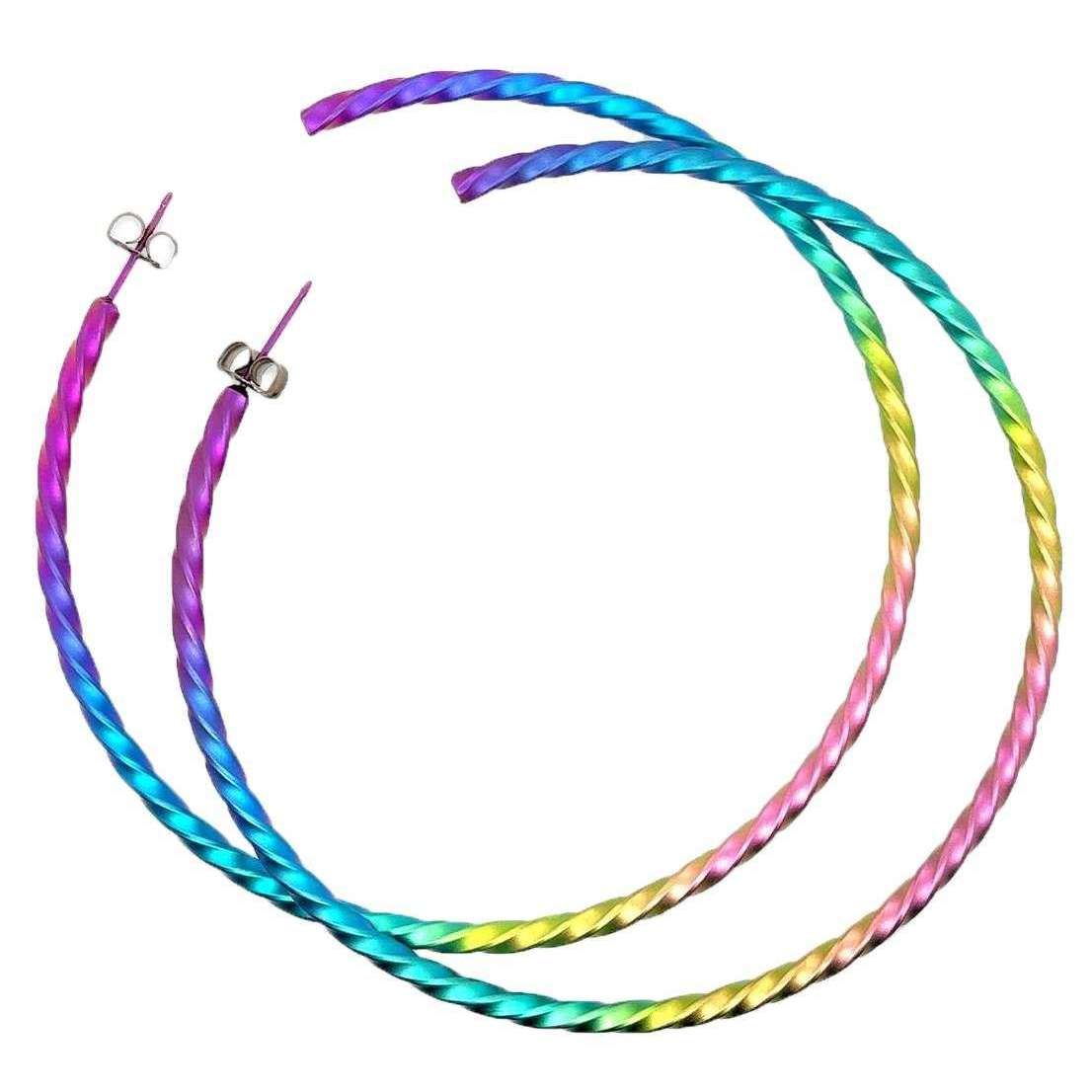 Ti2 Titanium Große verdrehte Reifenohrringe - Regenbogen