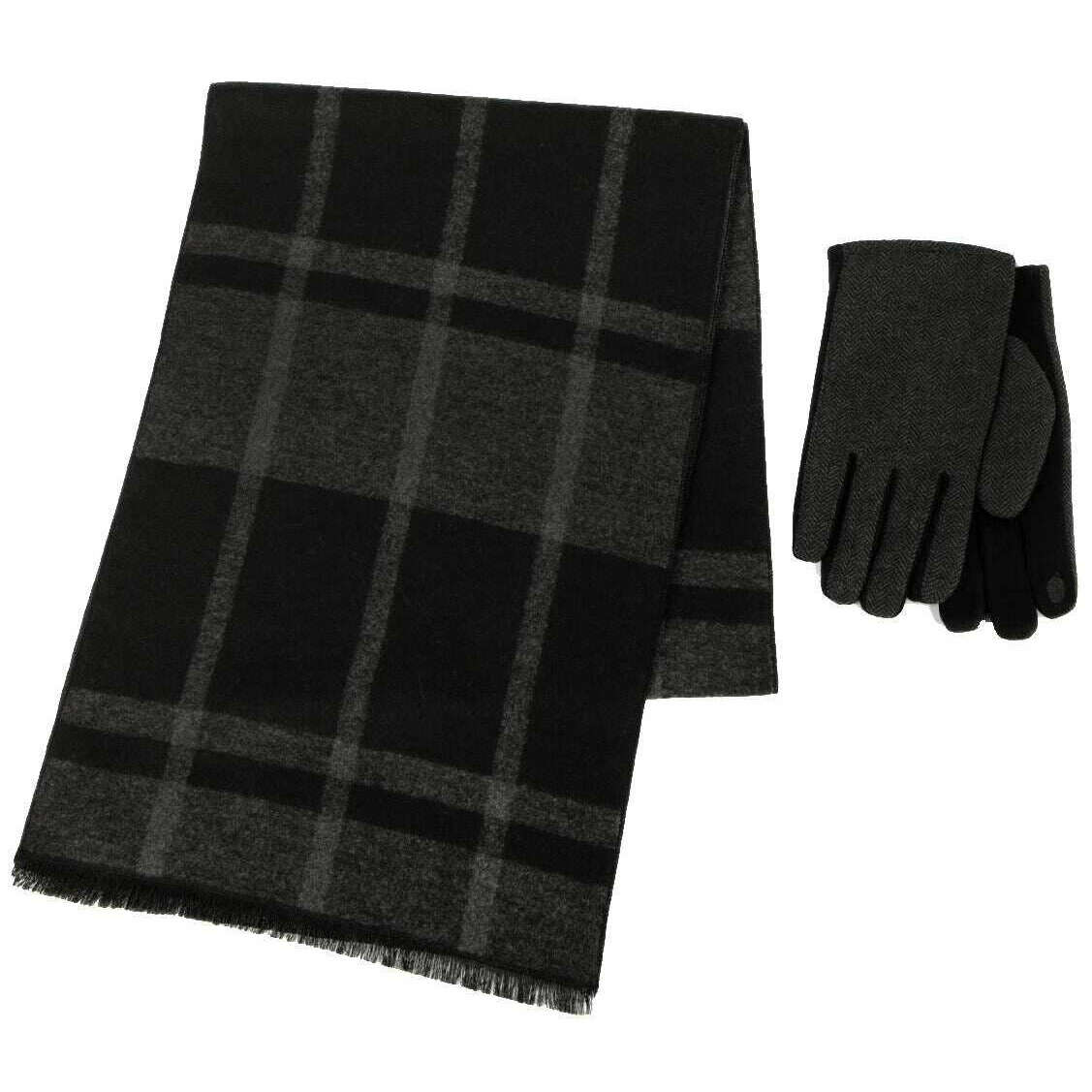 Totes Toasties Geschenkset mit kariertem Schal aus Wollmischung und Thermo-gefütterten Handschuhen – Schwarz