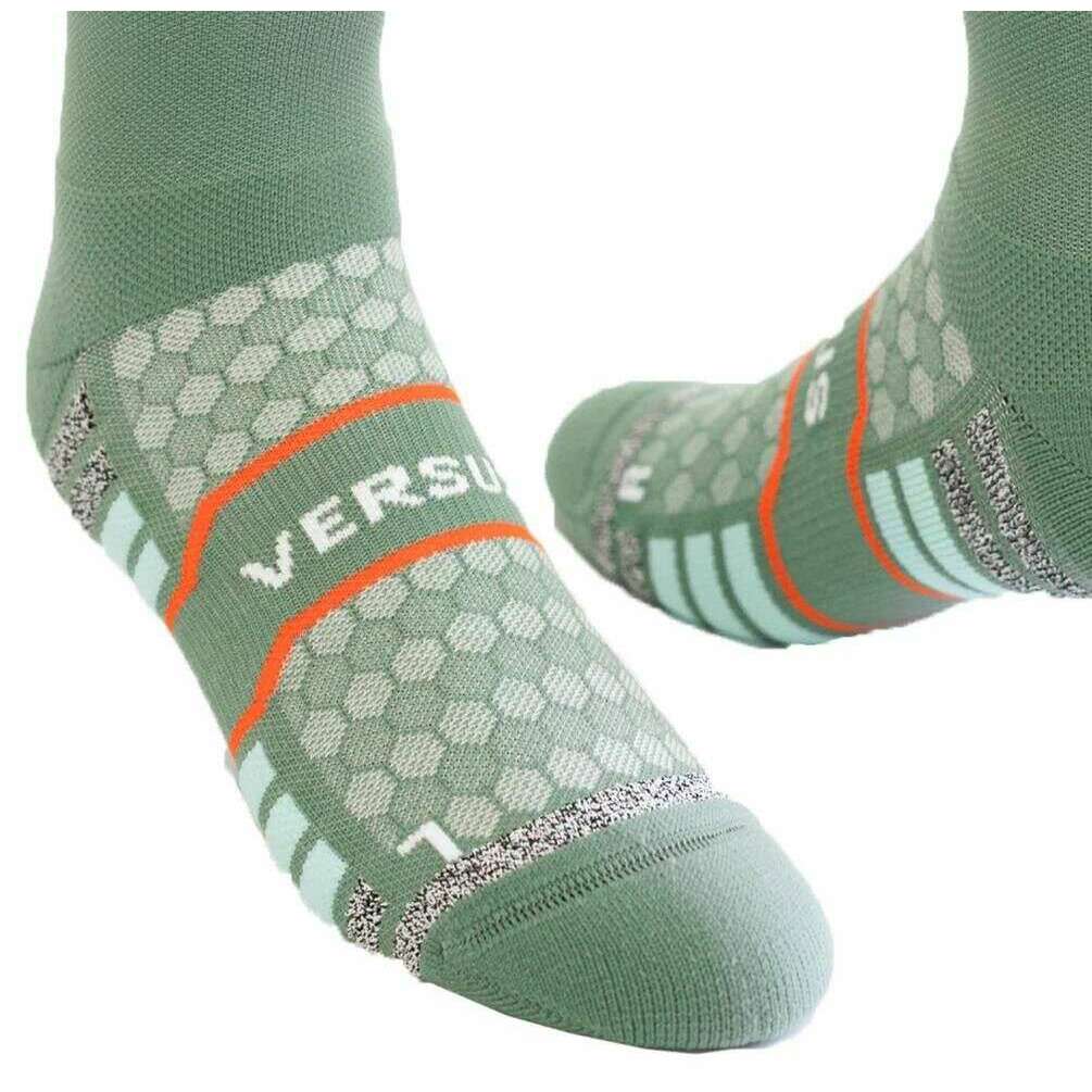 Diese gut verarbeiteten Unisex-Karoo-Trailrunning-Socken von Versus sind in der Farbe Grün/Orange erhältlich und bestehen aus 96 % Nylon und 4 % Elastan. Auch die grün/orangefarbenen Socken haben ein einzigartiges Muster. Es wird empfohlen, sie bei 30 Grad zu waschen, um diese Socken in gutem Zustand zu halten. Alle Socken werden komplett mit Sockenetiketten geliefert. Die Versus Karoo Trail-Laufsocken – Grün/Orange zeichnen sich durch Stil und hochwertige Technologie aus und unterstützen Ihr Fußgewölbe und Ihren Knöchel bei Freizeitkleidung oder intensiven Aktivitäten wie Laufen, Wandern und Rennen. Diese grünen Laufsocken sind durch ihr nahtloses Design atmungsaktiv und bequem.