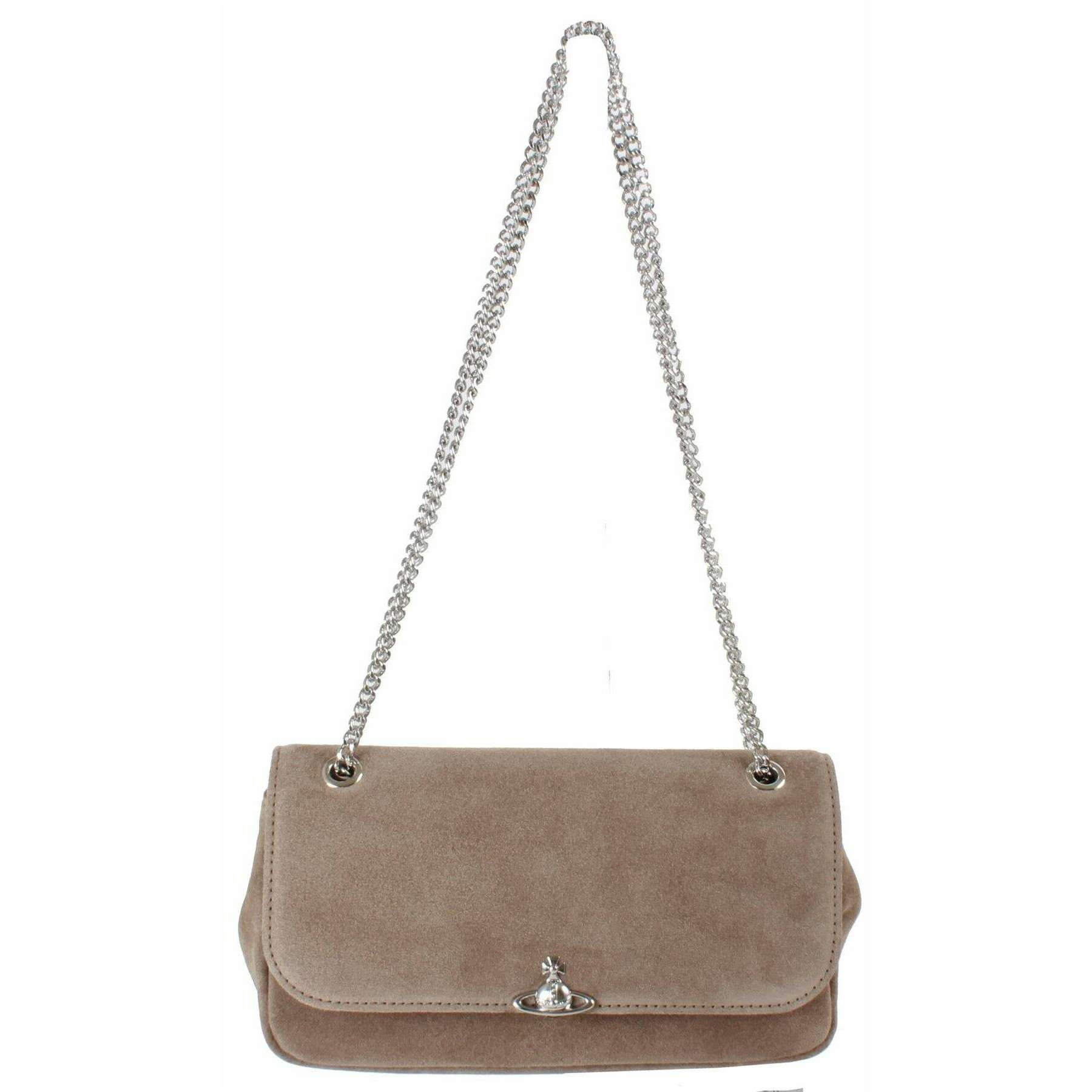Vivienne Westwood Umhängetasche aus Wildleder mit Kette – Steinbeige