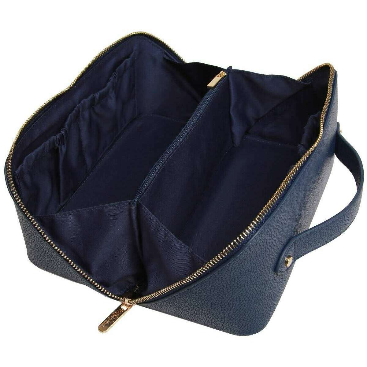 Présenté par la marque Alice Wheeler London, ce boîtier de train de voyage de luxe pour femmes de la Marine est fabriqué à partir de faux cuir 100% végétalien. Il mesure 12 cm (hauteur) x 24 cm (largeur) x 12 cm (profondeur). Il est recommandé d'essuyer avec un tissu pour garder ce sac en bon état. Tous les sacs sont complets avec un emballage Alice Wheeler. L'étui en train de voyage de luxe Alice Wheeler London - Navy est l'étui de voyage parfait pour les articles de toilette lorsque vous disparaissez ou le stockage pour vos produits de maquillage et de beauté. La conception de luxe propose une fermeture zippée et s'ouvre à un grand compartiment principal avec des poches internes pour vos petits éléments essentiels. La poignée supérieure le rend sans effort pour le transport et la marque élégante des deux côtés ajoute une touche élégante.