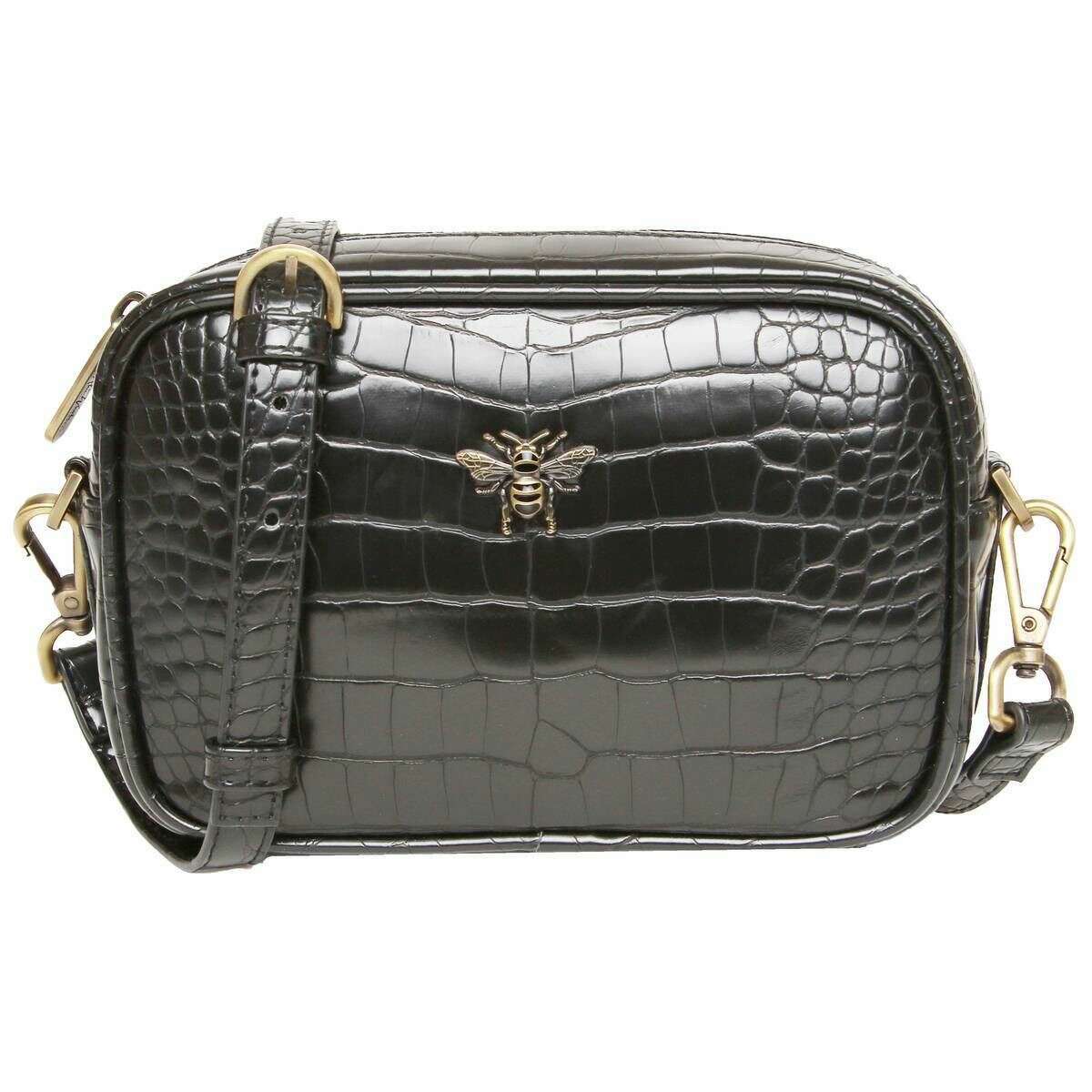 Fabriquée à partir de faux cuir 100% végétalien se trouve ce sac de carrosserie de caméra Mini Mayfair Black Croc Minfair par la créatrice Alice Wheeler London. Il mesure 13 cm (hauteur) x 19 cm (largeur) x 6 cm (profondeur). Tous les sacs sont complets avec un emballage Alice Wheeler. The Alice Wheeler London Mini Mayfair Camera Cross Body Bag - Black Croc propose un sac de corps croisé contemporain et élégant pour vos aventures de tous les jours ou votre rendez-vous en soirée. La conception sans main assure la commodité sans effort tout en ayant l'air super avec votre tenue choisie. Attaché est une sangle palpée robuste qui peut être ajustée à la longueur souhaitée, vous donnant du réconfort lors du port. Le Mini Mayfair propose un compartiment généreux pour vos éléments essentiels tout en vous assurant d'avoir des poches internes pour des articles plus précieux. Le logo emblématique et élégant de Bumble Bee arrête ce magnifique design ainsi que nommé la marque à l'arrière.