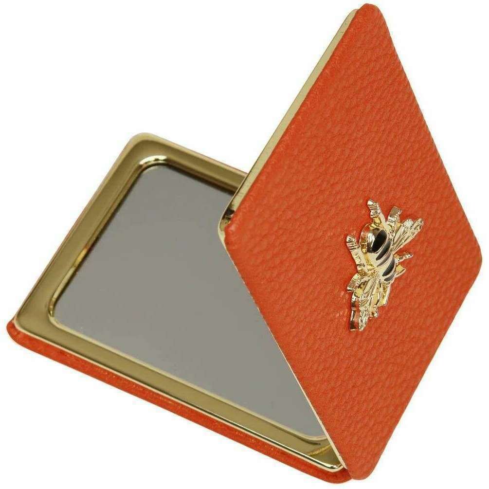 Ce miroir compact oblong pour femmes par la marque Alice Wheeler London est fabriqué à partir de faux cuir 100% végétalien et est présenté en orange. Il mesure 8,5 cm (hauteur) x 6 cm (largeur). Tous les compacts sont livrés avec un emballage Alice Wheeler. Le miroir compact oblong Alice Wheeler London - Orange est l'accessoire parfait qui est essentiel pour emporter avec vous dans votre sac à main. La marque Alice Wheeler est intégrée à l'avant. À l'intérieur se trouve un miroir avec un cadre métallique à deux tons dorés qui est idéal pour les retouches quotidiennes.