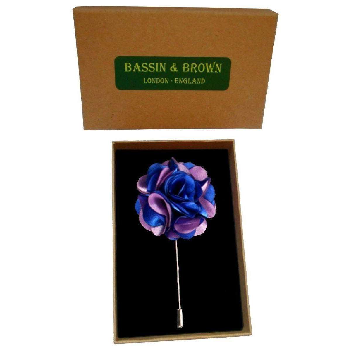 Bassin et épingle à revers florale brun - bleu / lilas
