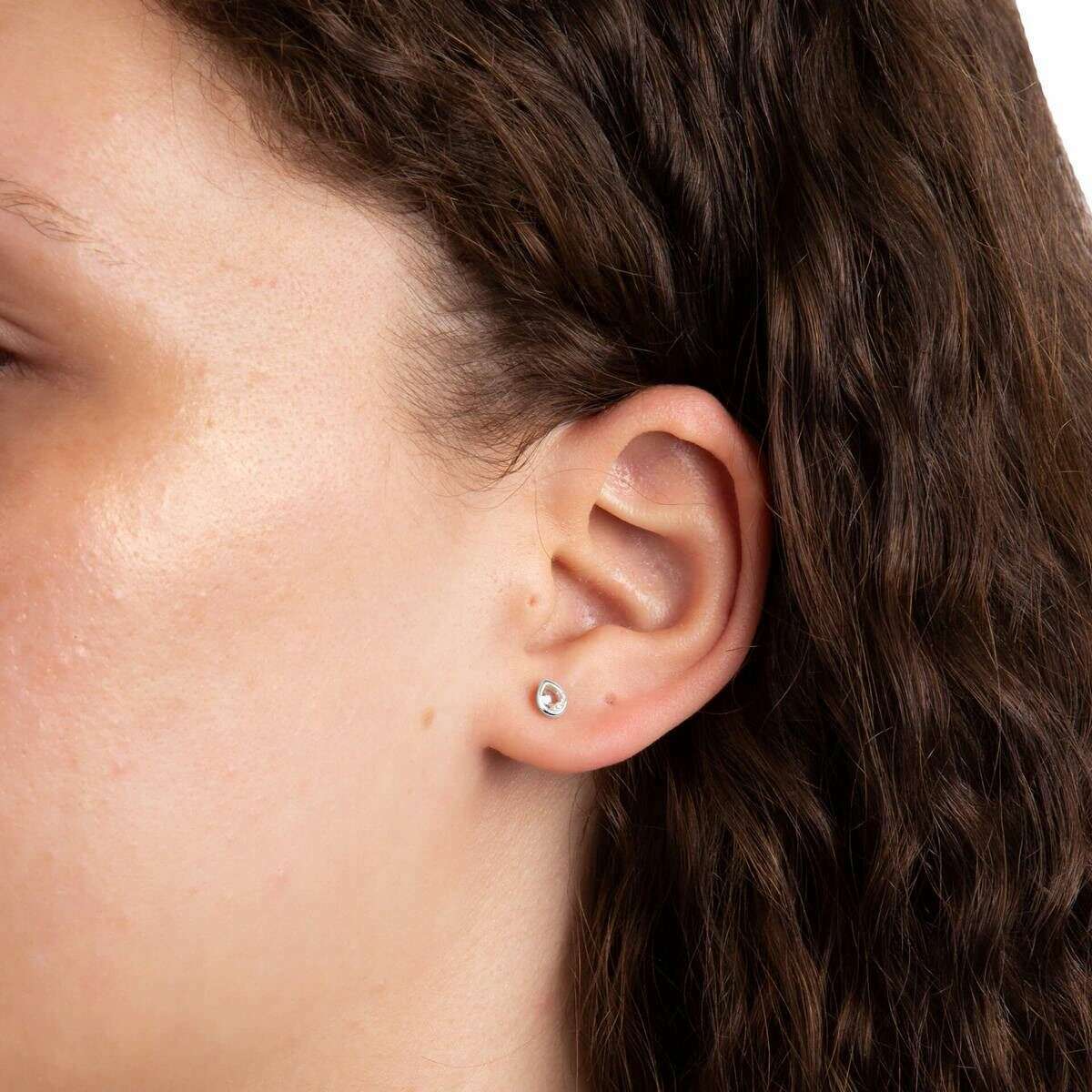 Début de boucles d'oreilles en pierre de naissance semi-précieuses avril - argent / blanc
