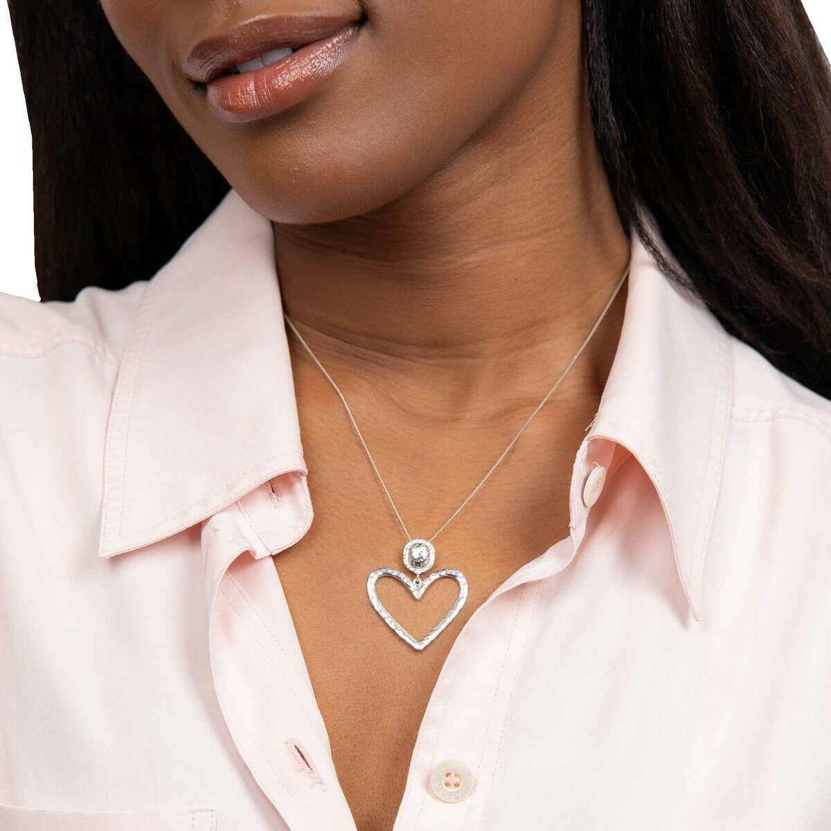 Beginnings GRAND PENDANT COEUR HAMÉRÉ - Argent