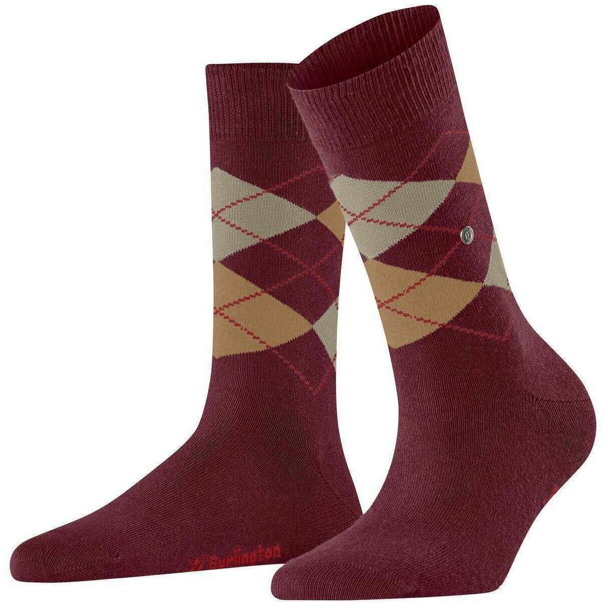 Burlington Basic Argyle Box Box Socks - Wine Red / Huile Mel Gray