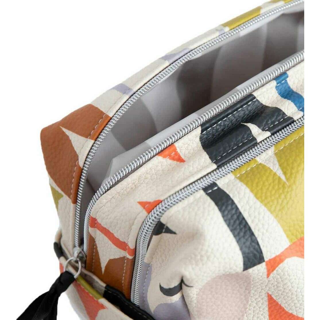 • Fermeture à glissière double, 2 sections, poignée de maintien, quincaillerie argentée, poignées en gros-grain