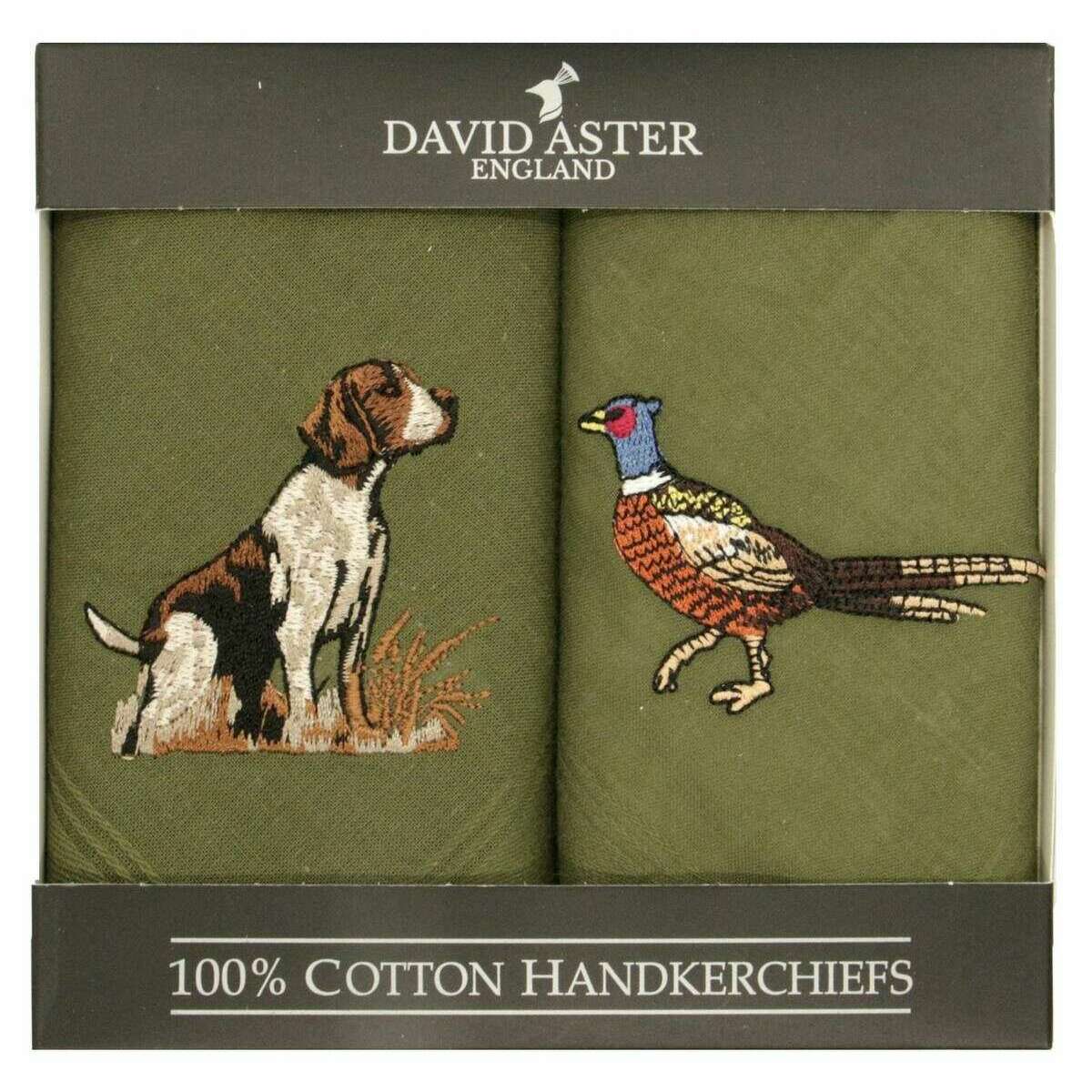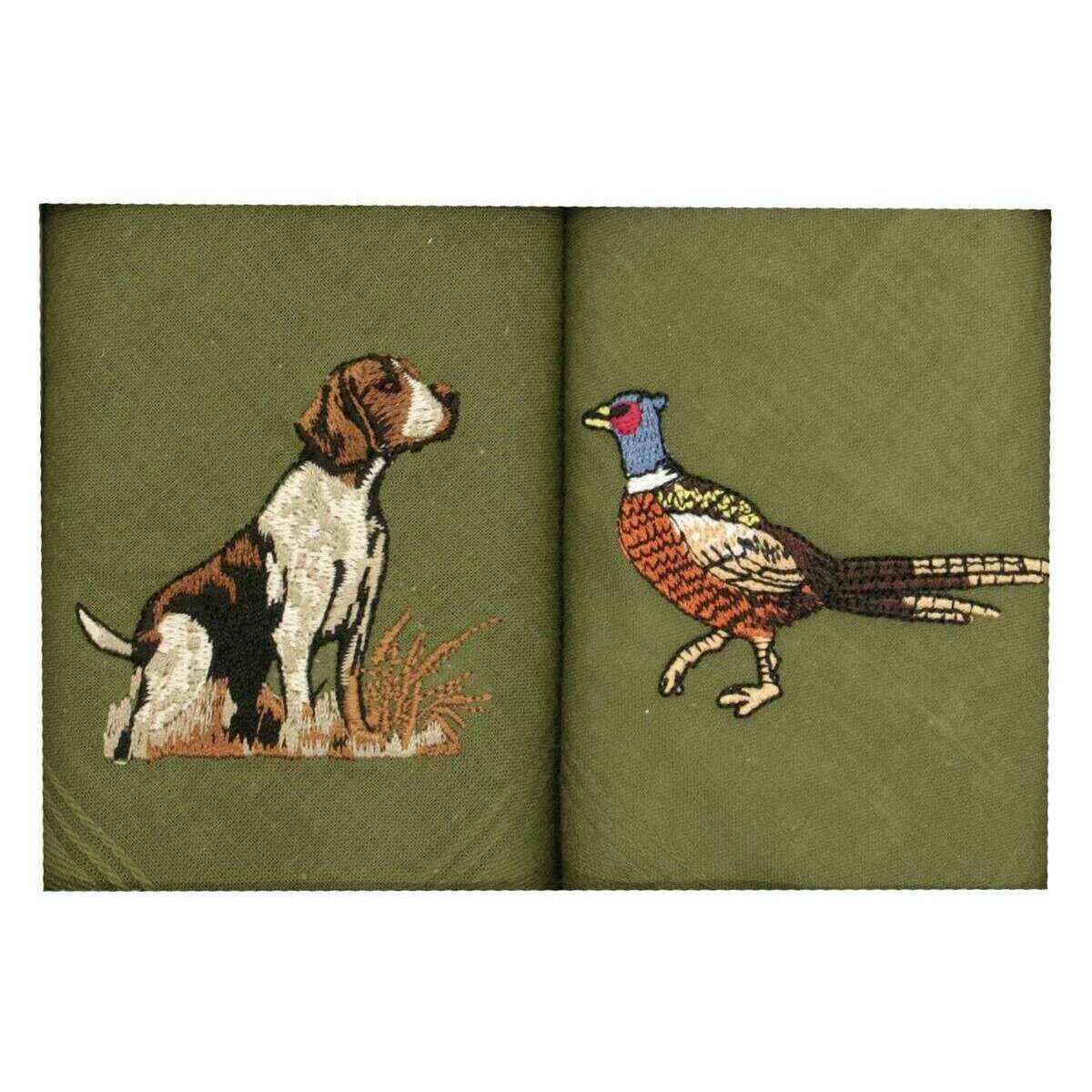 David Aster Pheasant et Hound Country Broidered Cotton Mouchier de mouchoir - Green