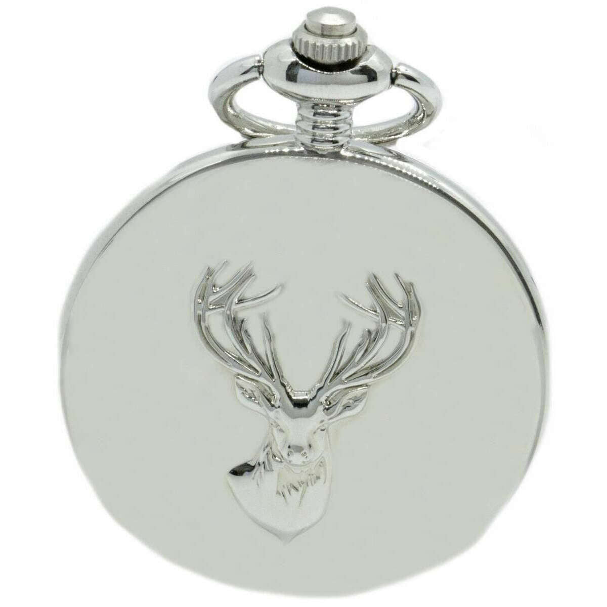 David Aster Stag en quartz Full Hunter Hunter Pocket Watch - Silver / White