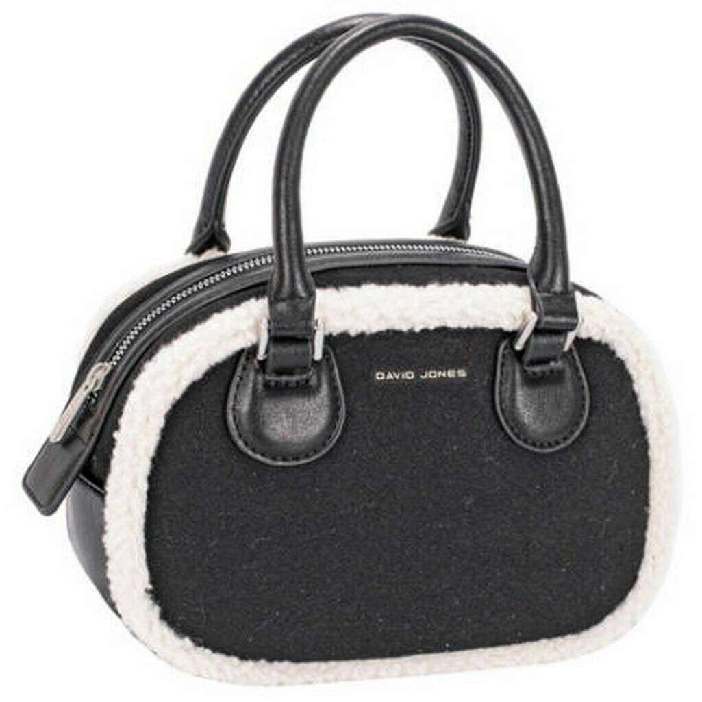 • Sangle réglable/détachable, 2 poignées de transport, fermeture éclair intérieure et poches ouvertes, fermeture zippée sur le dessus, bordure en fausse fourrure, marque David Jones.