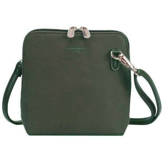 Ce petit sac à bandoulière pour femmes est façonné par la marque David Jones de couleur verte et est fabriqué à 100% de polyuréthane. Il mesure 18 cm (hauteur) x 17 cm (largeur) x 5 cm (profondeur). Il est recommandé d'essuyer avec un tissu pour garder ce sac en bon état. Tous les sacs sont complets dans l'emballage de David Jones. Le sac à bandoulière David Jones Small Dome - Dark Green est plein de caractère et de style, avec une poche arrière zippée et deux poches internes, cela vous aidera à rester organisé et est assez spacieux pour contenir tous vos articles quotidiens. Finie avec un dessus zippé, des sangles réglables et un bandoulière détachable faisant du sac à main une option polyvalente.
