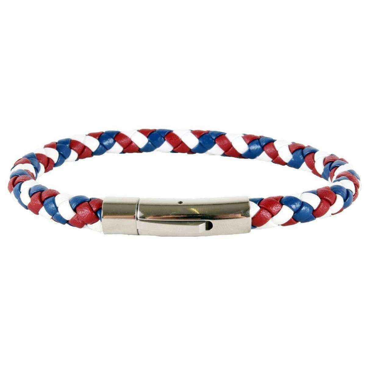 Bracelet de fermoir en cuir tressé David Van Hagen - rouge / bleu / blanc