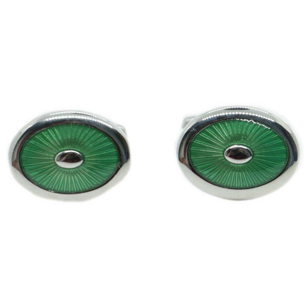 David van Hagen Email Oval Cuffe Links - Green / Silver