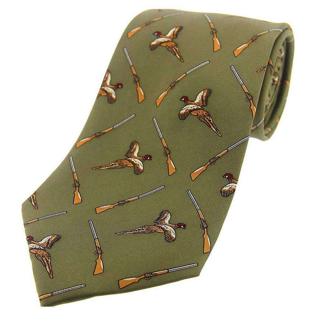 David Van Hagen Flying Fazant en Shotgun Country Silk Tie - Country Green