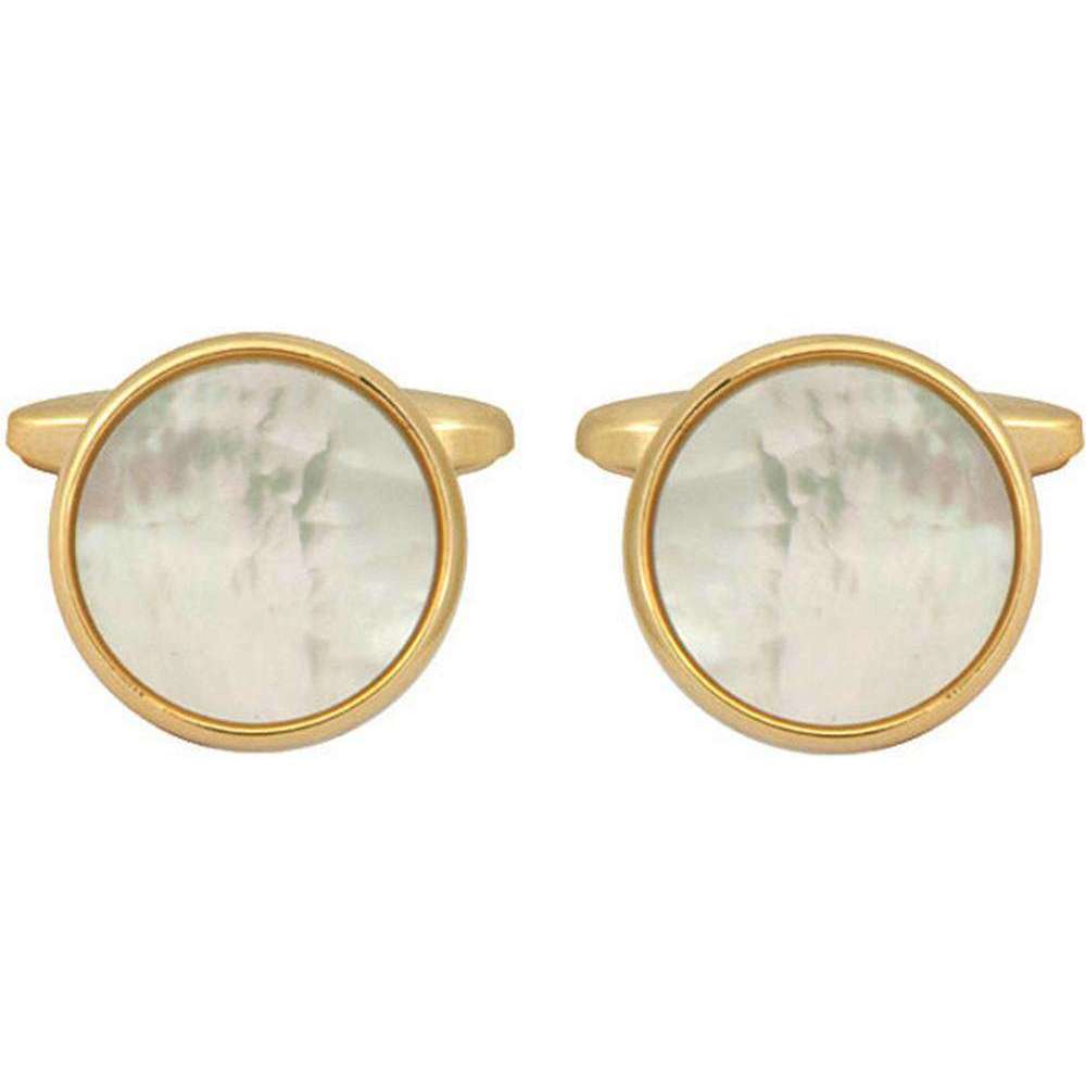 David van Hagen Gold plaqué Mère des bouchons de manchette ronds de perles - blanc / or