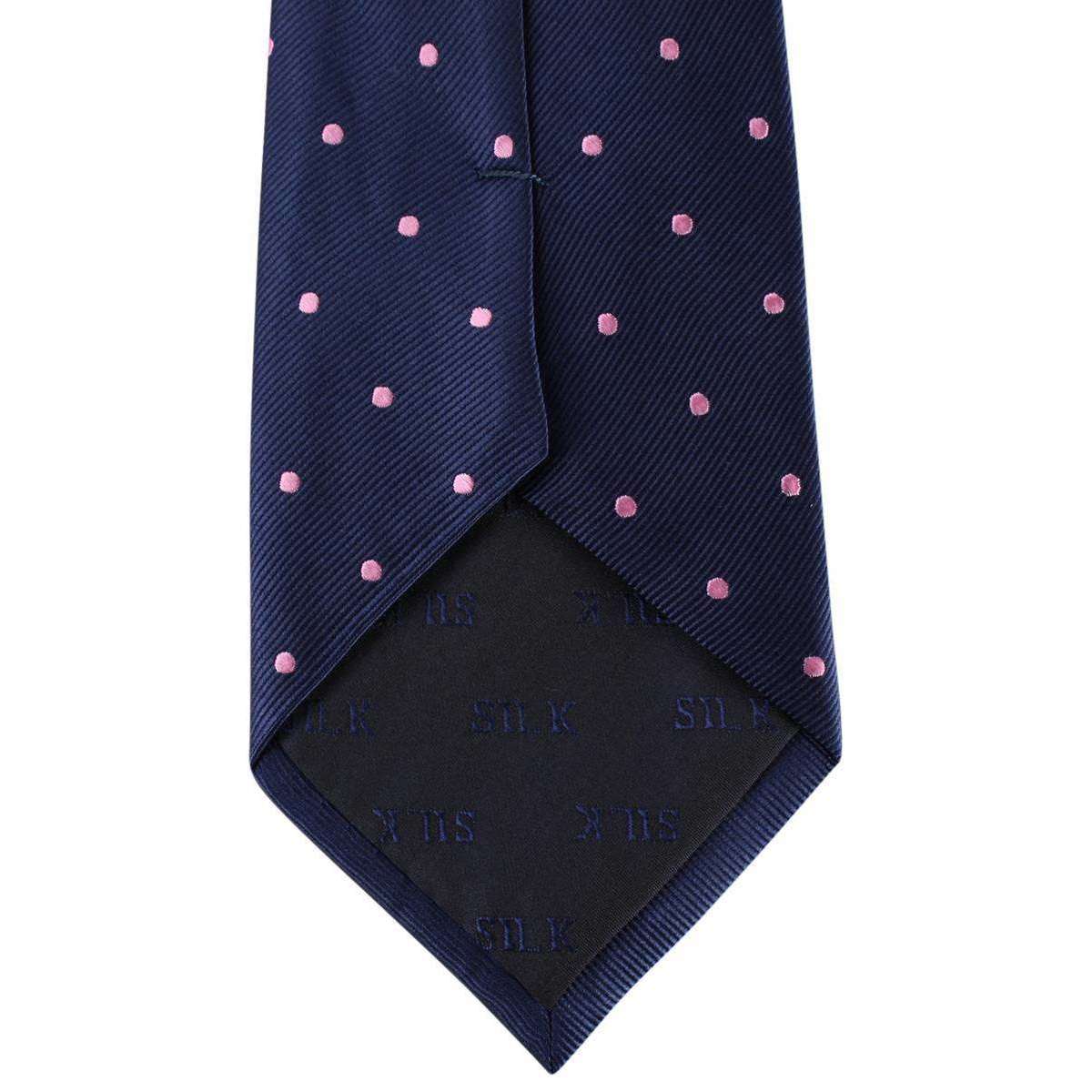 David Van Hagen Polka Dot Tie - Navy/Pink