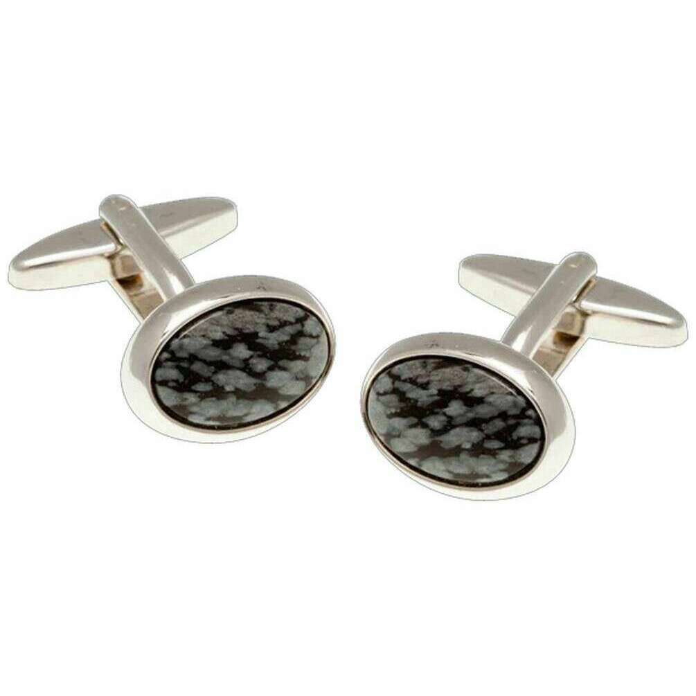 • Pierre de flocon de neige semi-précieuse cabochon, bords polis, bascule de bouton de manchette standard