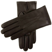 Dents Devize Gants en cuir doublé de cachemire à doigt plus court - marron
