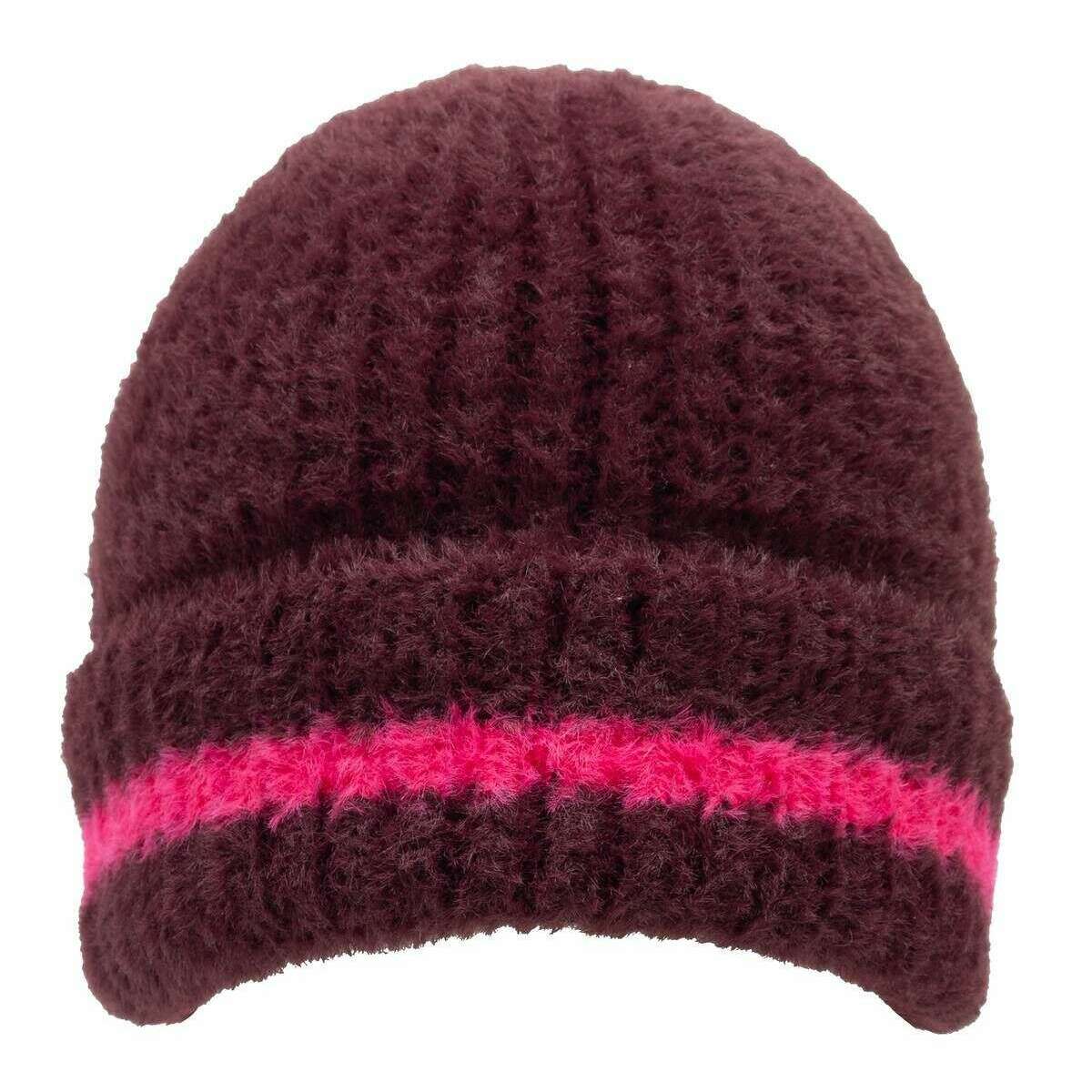Bonnet en fil de plumes Dents - Damson bordeaux/rose orchidée