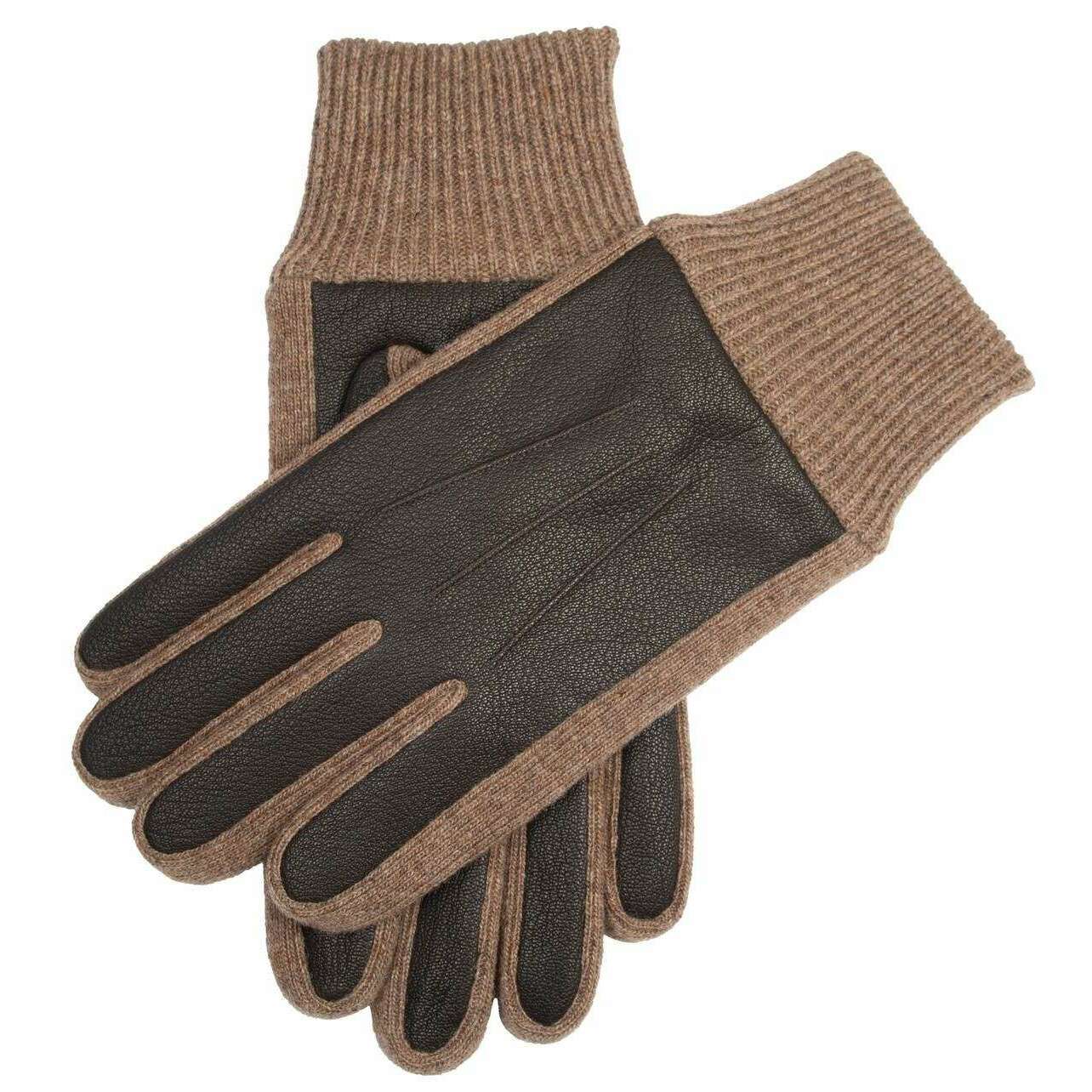 Gants en cuir à manchette tricotée Dents Harrogate - Marron
