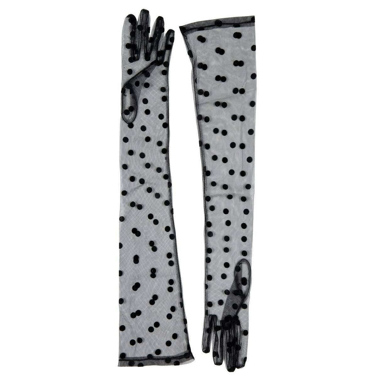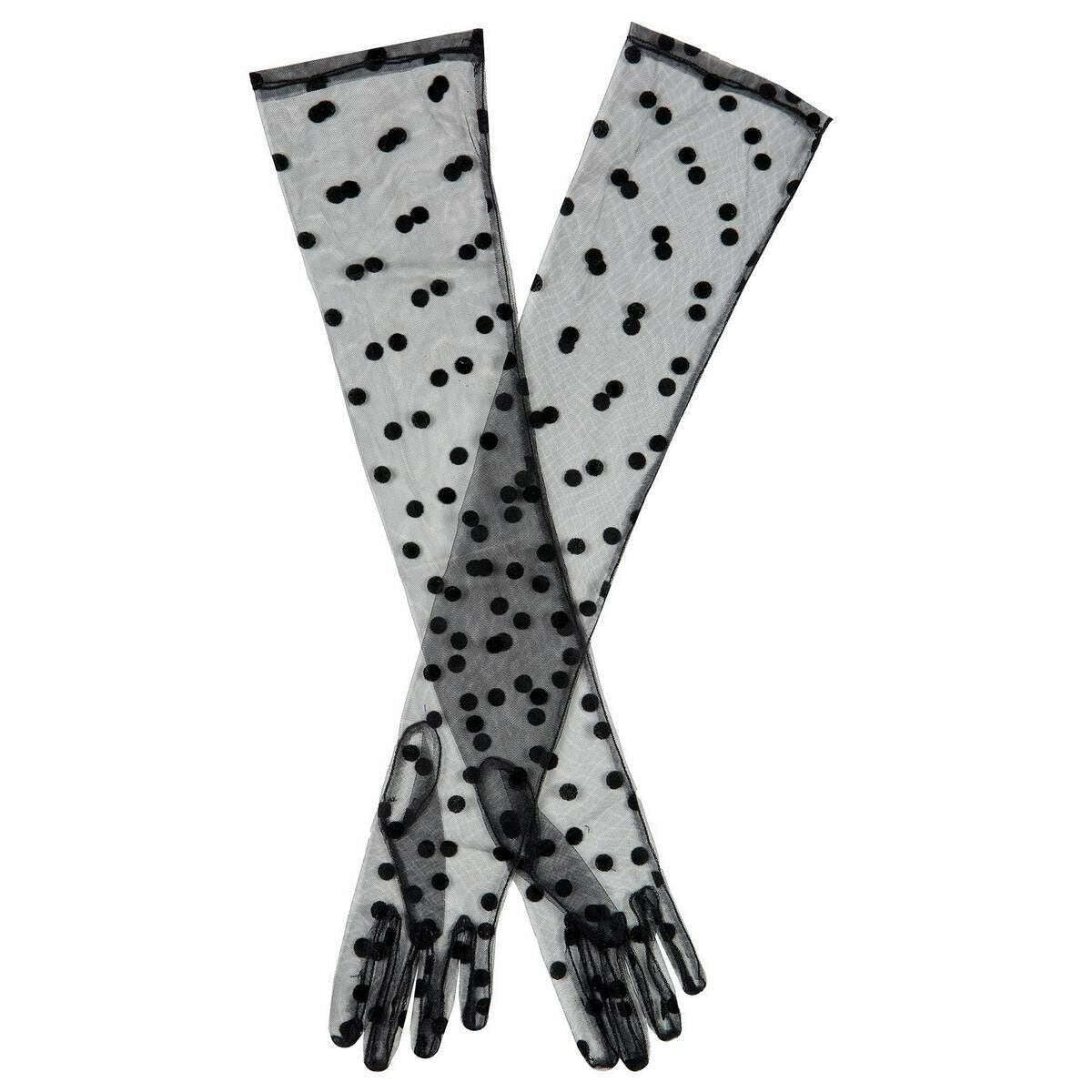 DENTS LILA Long Opera Spotty Tulle Gants - Black