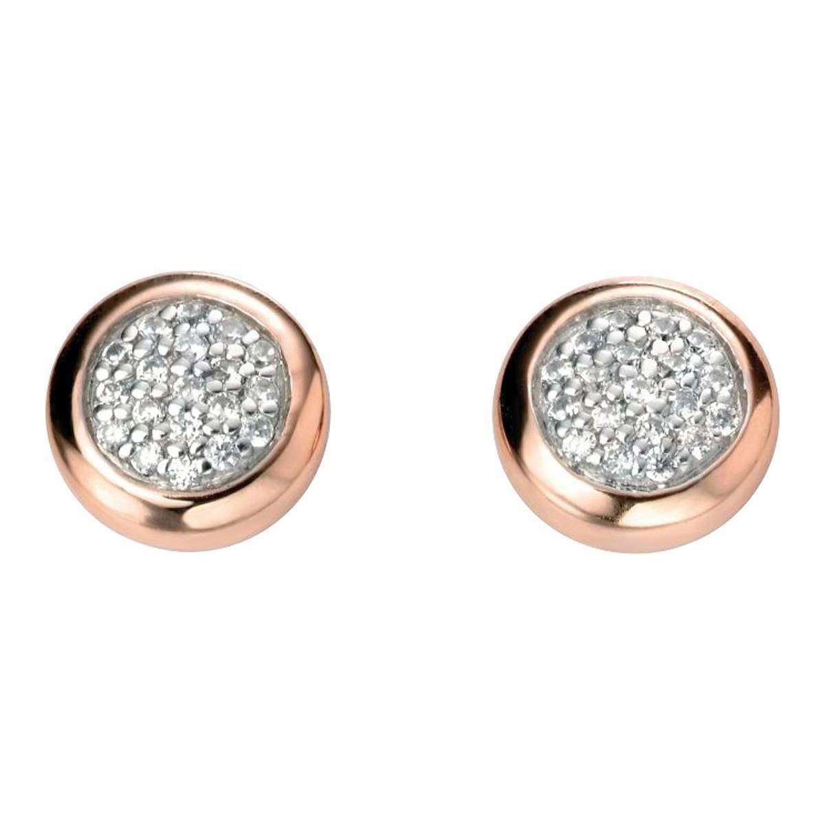 Elements Silver Cumbic Zirconia Cabochon Stud Oreads - Silver / Rose Gold / Clear