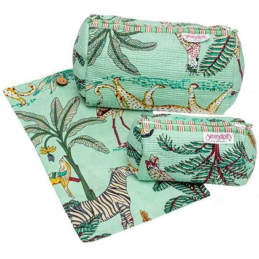 La fabrication de coton 100% naturel est ce boîtier cosmétique de sérendipité féminin de la jungle green de la jungle. Il mesure petit - 13 cm (hauteur) x 20 cm (largeur) x 10 cm (profondeur) Grand - 16 cm (hauteur) x 25 cm (largeur) x 13 cm (profondeur). Tous les sacs sont livrés avec Elie Beaumont Packaging. L'ensemble de boîtiers cosmétiques Elie Beaumont Serendipity - Jungle Mint Green est un incontournable si vous cherchez à mettre à niveau vos sacs de maquillage ou de toilette à emporter avec vous lors de vos voyages ou à glamour votre chambre. Avec un magnifique design fabriqué à la main avec du coton naturel qui est meilleur pour vous et l'environnement, quatre poches internes dans chacun pour l'organisation et une doublure étanche pour un nettoyage facile. Ces sacs sont légers et durables, ce qui en fait le compagnon de voyage parfait.
