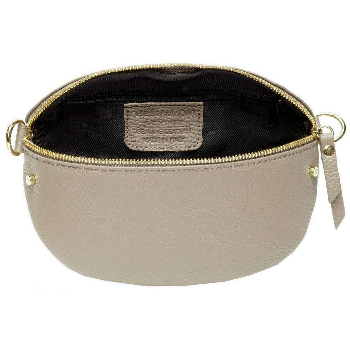 • Sangle en cuir réglable détachable, poche zippée interne, fermeture à glissière, conçue au Royaume-Uni, quincaillerie en or