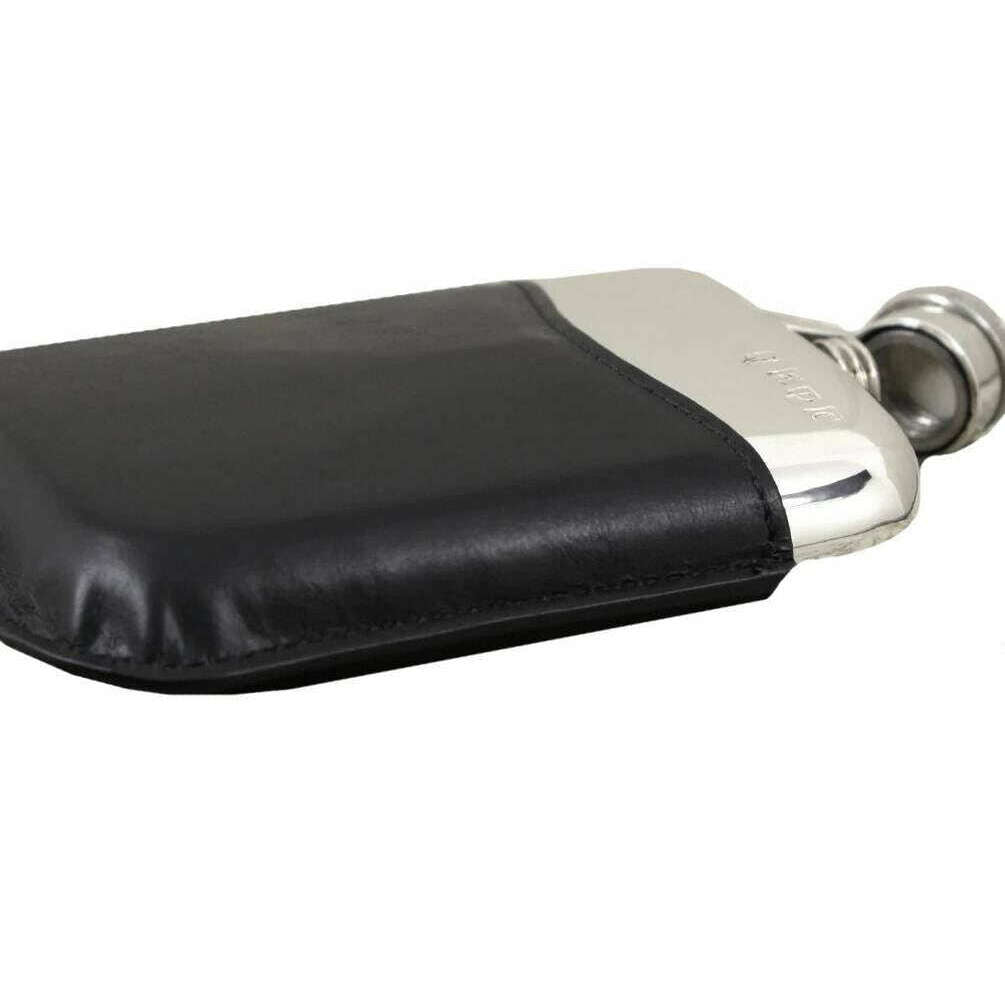 English Pewter Company 6oz Captive Top Purse Flask and Pouch - Silver / Black
