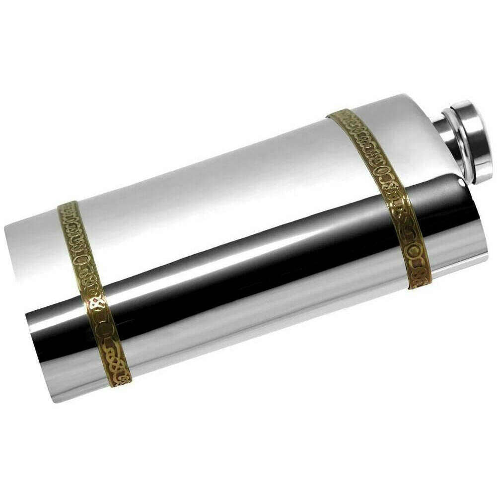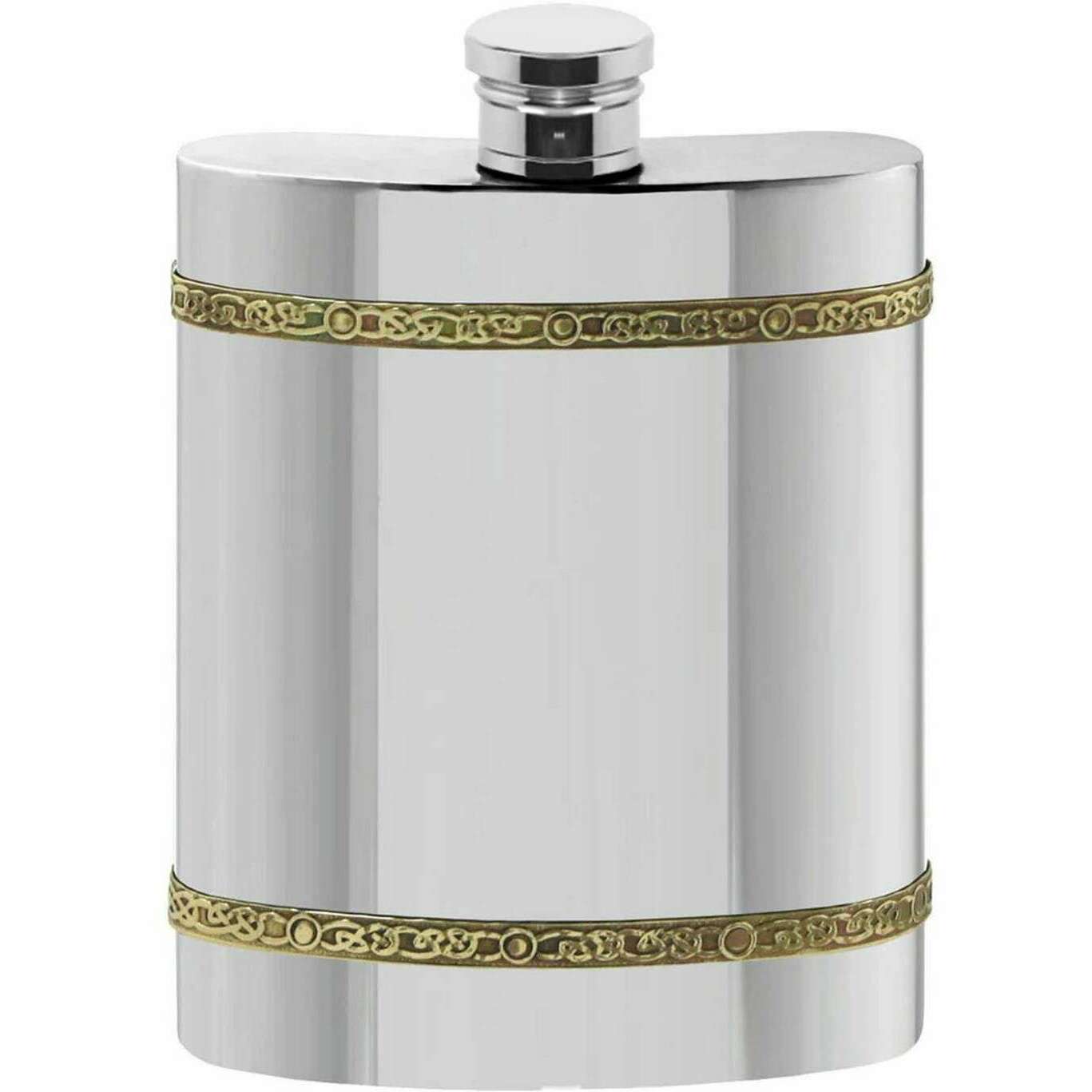 Anglais Pewter Company 6oz Celtic Brass Band Flask - Silver / Gold