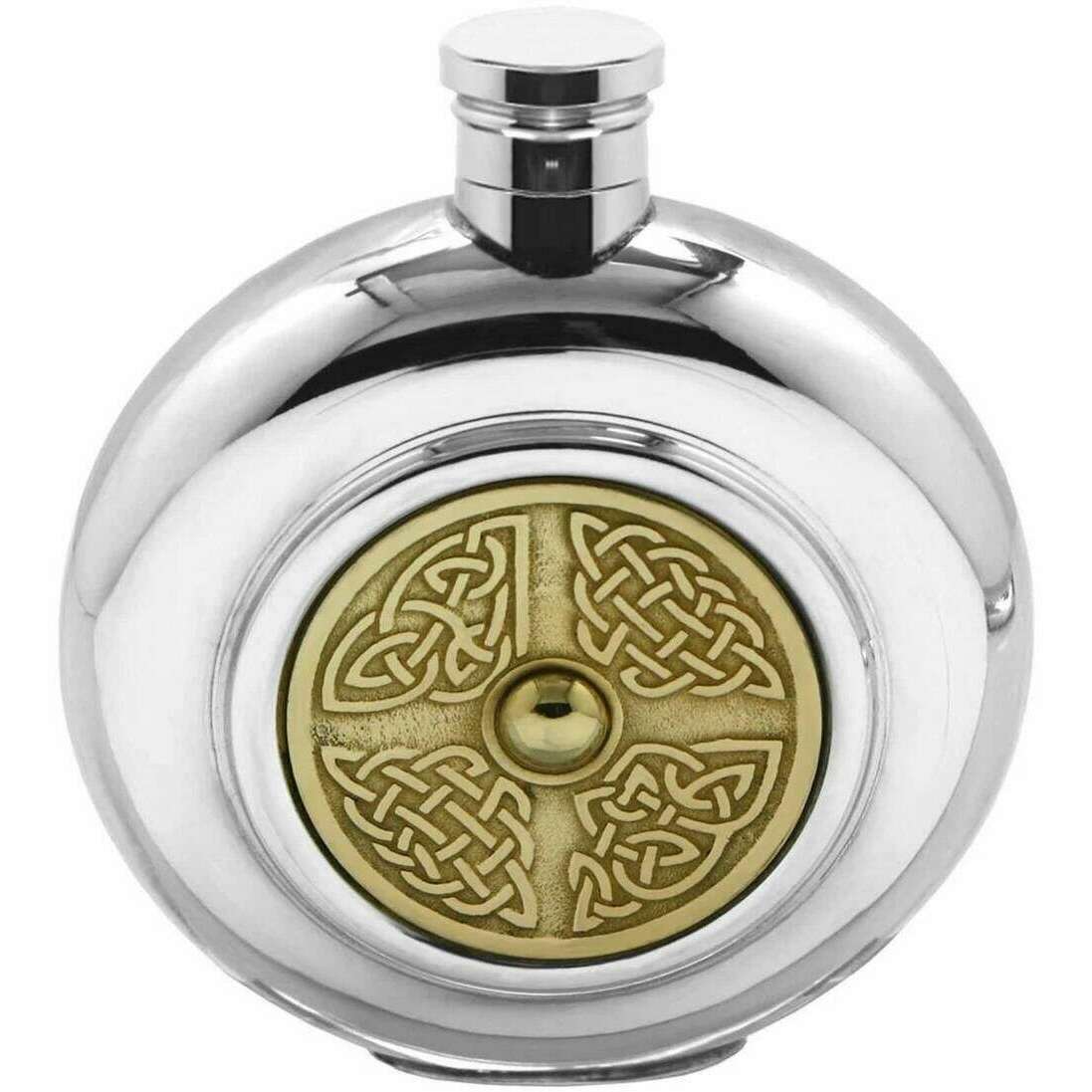 English Pewter Company 6oz Celtic Disc Flask - Silver / Gold