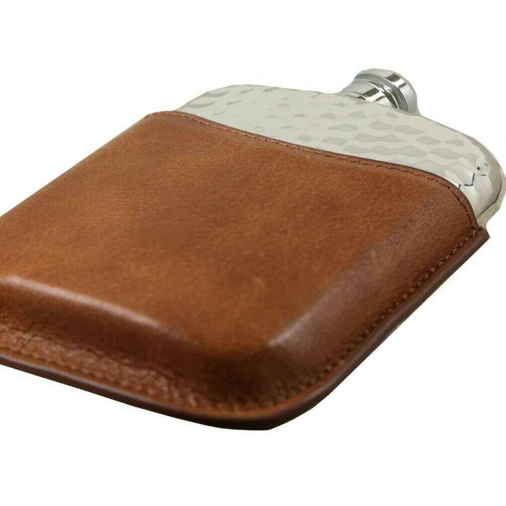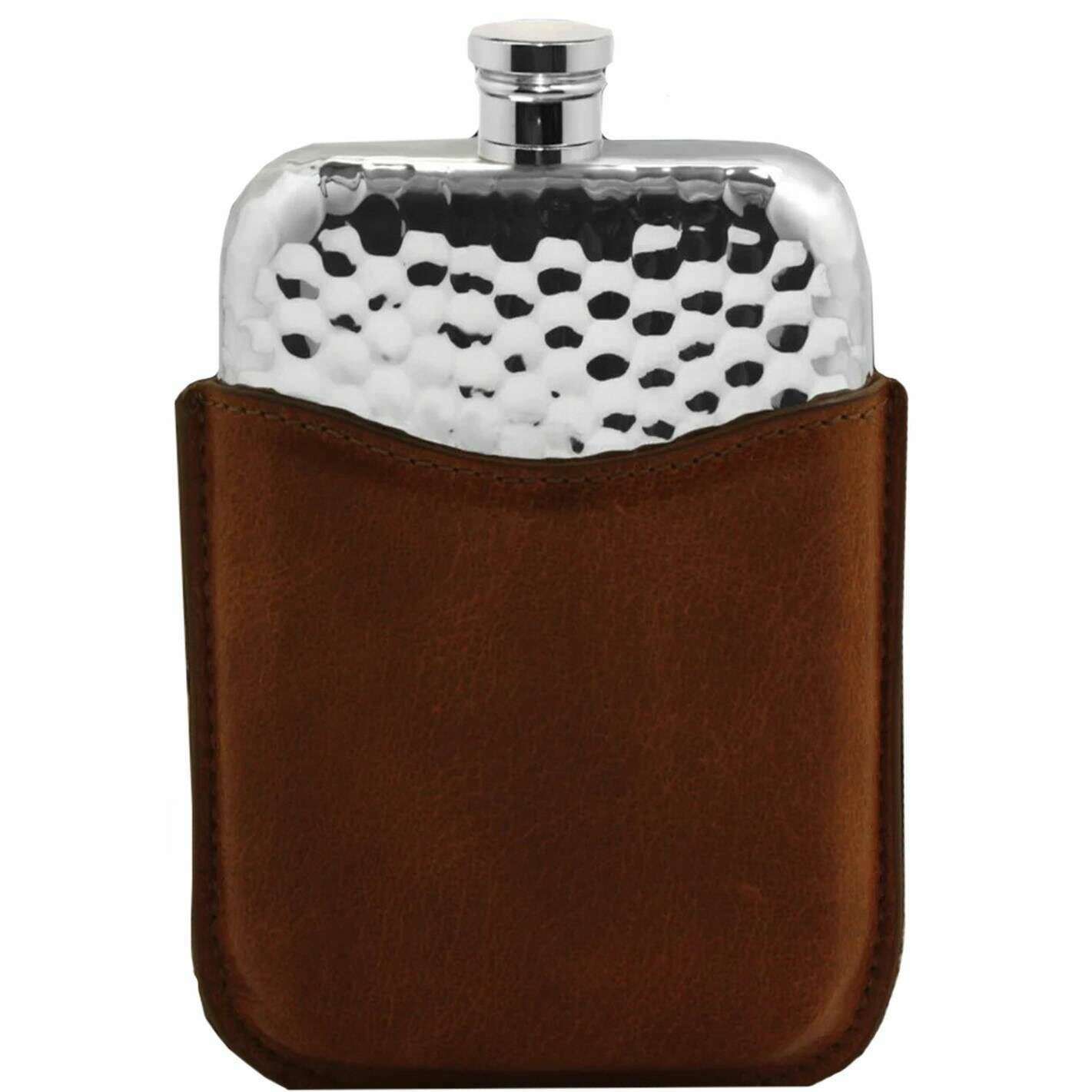 Anglais Pewter Company 6oz Flash et pochette martelée - Silver / Brown