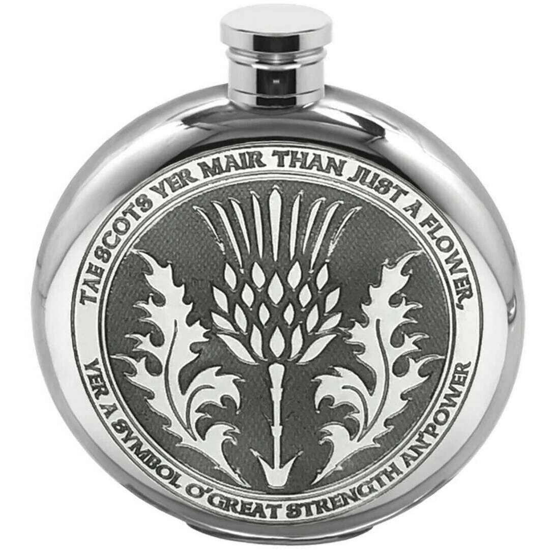 English Pewter Company 6oz Tae a Thistle Round Flask - Silver