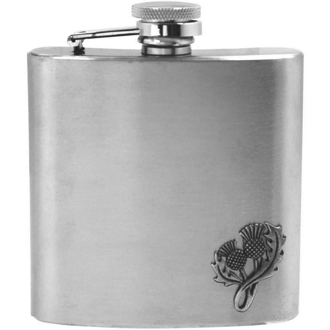 English Pewter Company 6oz Thistle Badge Flask - Silver