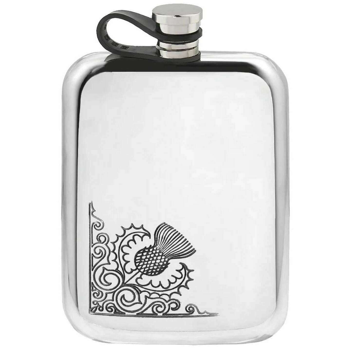English Pewter Company 6oz Thistle Flexi Cap Purse Flask - Silver