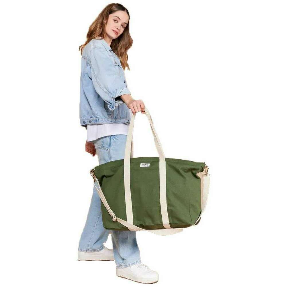 • Sangle organique, recyclée, réglable, poignées de transport, glissière, poche zippée intérieure