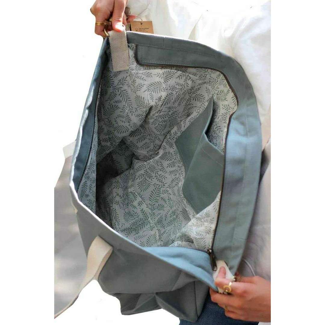 Ce sac de week-end en jean pour hommes ou femmes est façonné par le sac postérieur de la marque de couleur bleue et est fabriqué à partir de coton 100% biologique. Il mesure 38 cm (hauteur) x 60 cm (largeur) x 16 cm (profondeur). Tous les sacs sont livrés avec des étiquettes de sac postérieur. Le sac de week-end en jean du sac postérieur - Sage Blue est un excellent choix pour les voyages car sa grande section principale est agréable et spacieuse, vous donnant la chambre pour les nécessités de nuit. Il est équipé de deux poignées de transport et d'un bandoulière qui peut être ajusté en fonction. À l'intérieur, il a également une poche pour les petits articles comme vos clés ou votre téléphone. Fabriqué à partir de coton organique épais et résistant qui est étiqueté GOTS signifiant que les processus de production et de transformation respectent l'environnement et le respect et l'amélioration des conditions de travail. La doublure est décorée d'un motif élégant, donnant au sac un flair élégant.