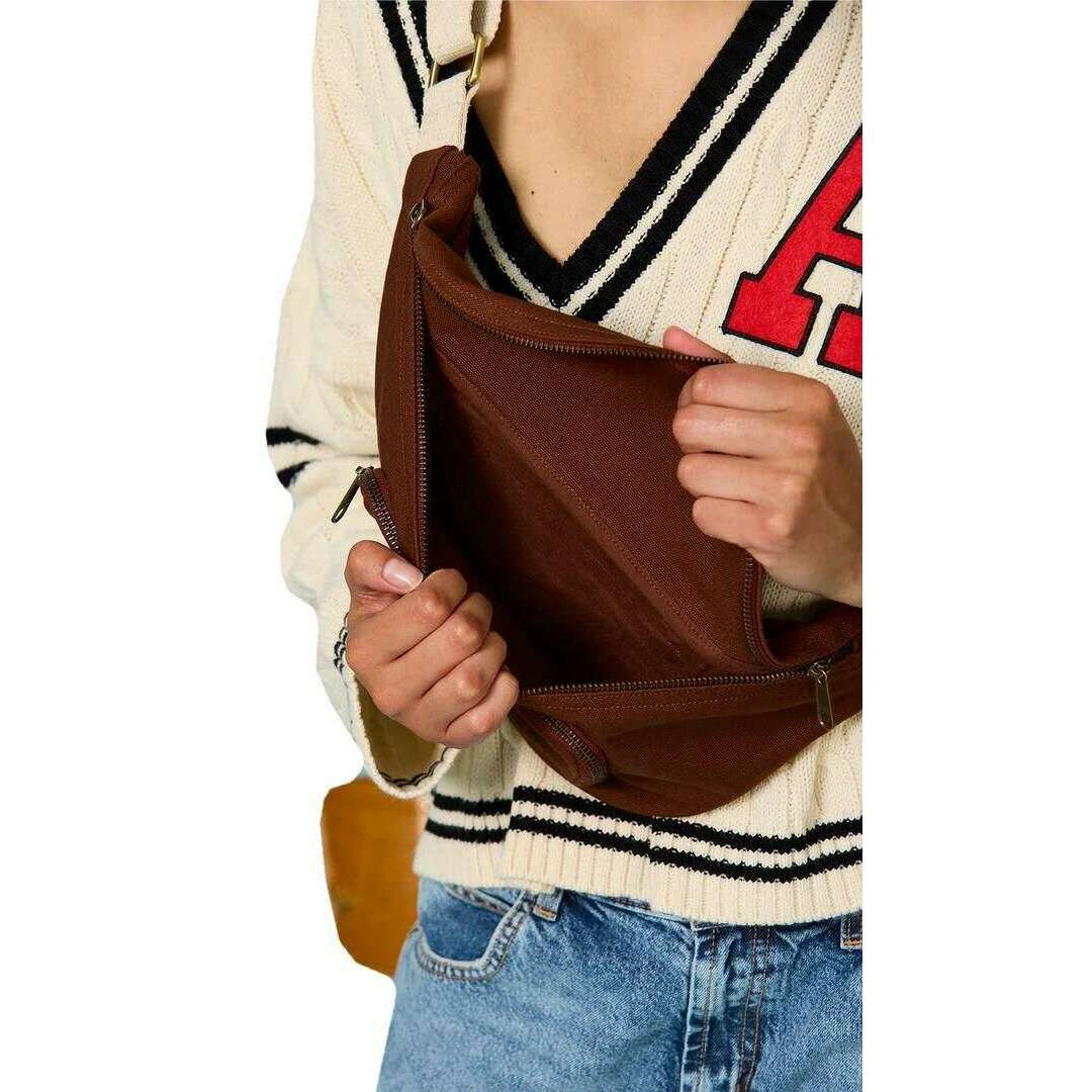 • Sangle organique, recyclée et réglable, 2 poches zippées extérieures