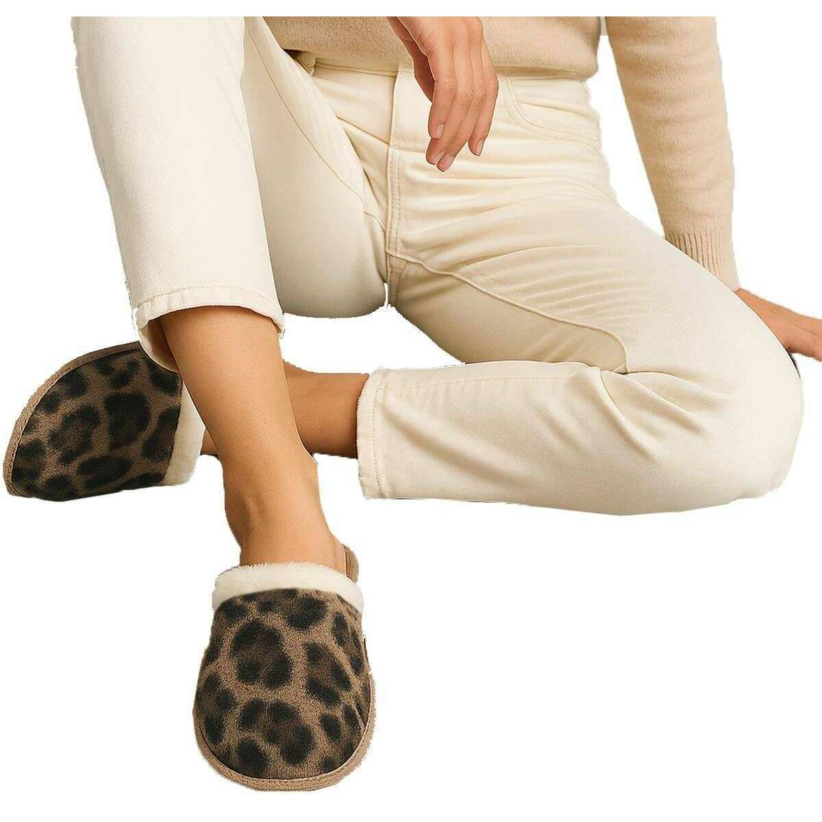 Chaussons mules en fourrure animale Isotoner - Léopard marron